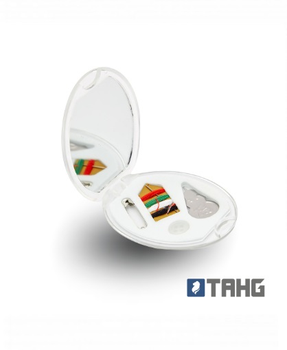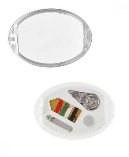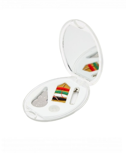 Incluye: Espejo, aguja con 4 tonos de hilo, botón y alfiler de gancho.