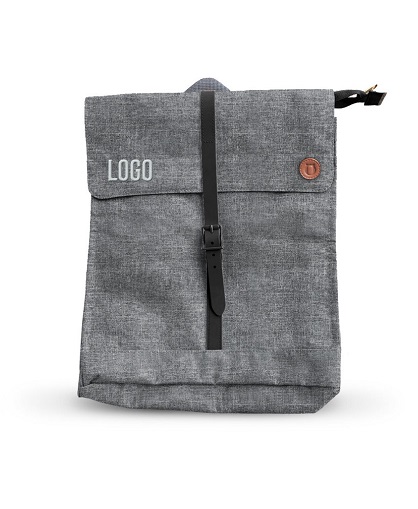 Mochila cruzada en tela raquelada polyester 600d con aplicacion tnt gris.