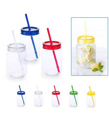Con tapa a rosca y pajita a juego.