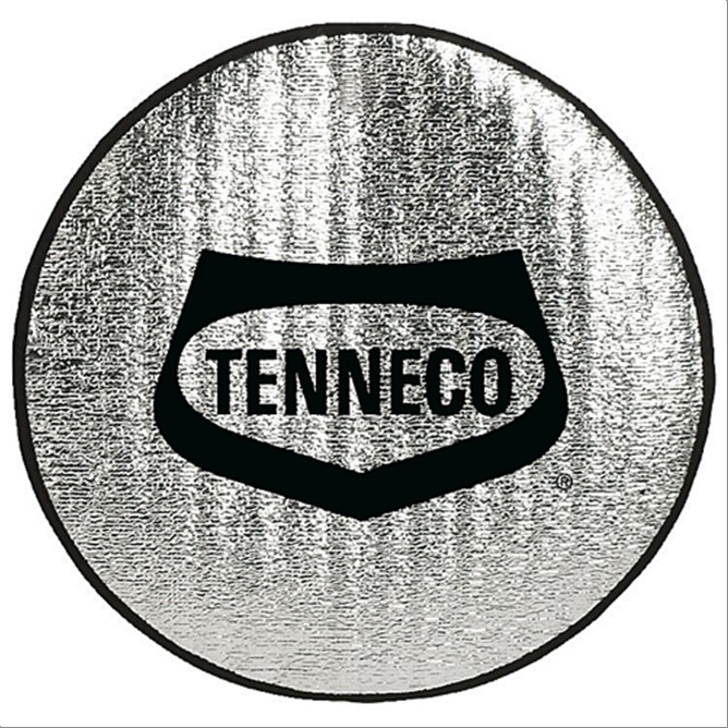 Cubrevolante en aluminio a una cara en color plateado de acabado metalizado con ribetes de poliéster en color negro.