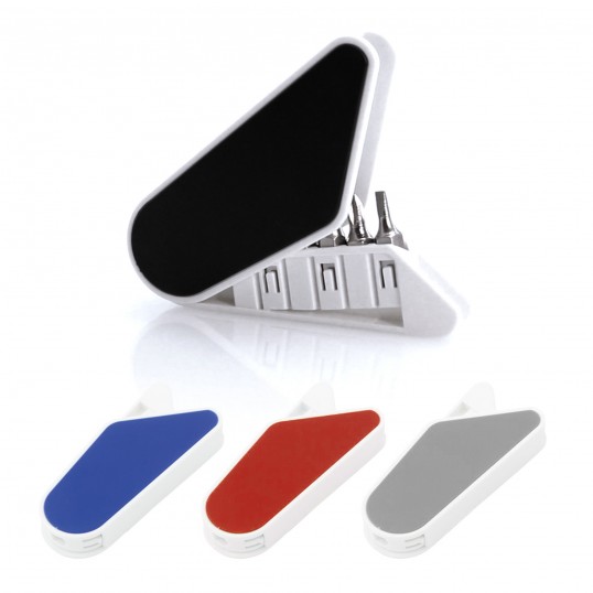 Multiherramienta con resistente cuerpo magnético de acabado anti deslizante con 6 accesorios.