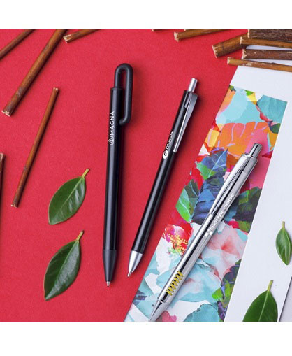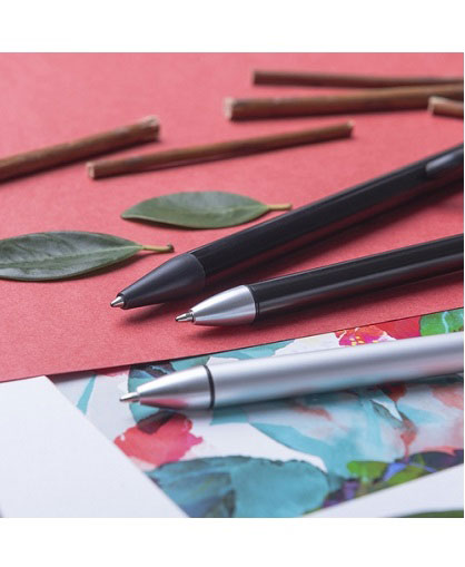 Bolígrafo con cuerpo acabado en aluminio de colores brillantes.