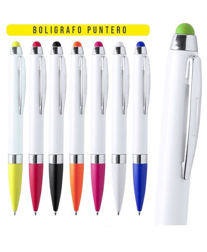Bolígrafo puntero de colorido diseño, con cuerpo en elegante color blanco sólido