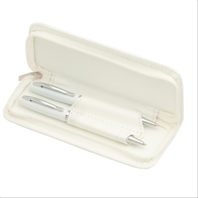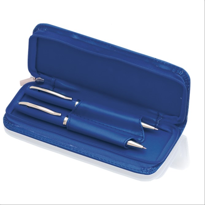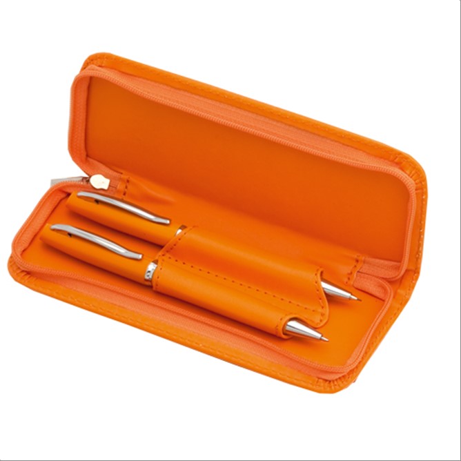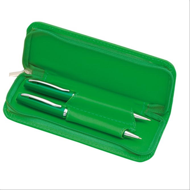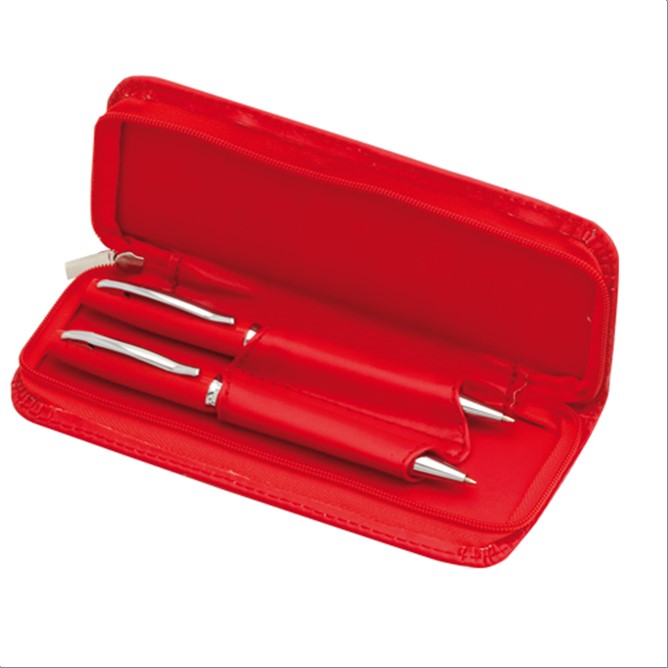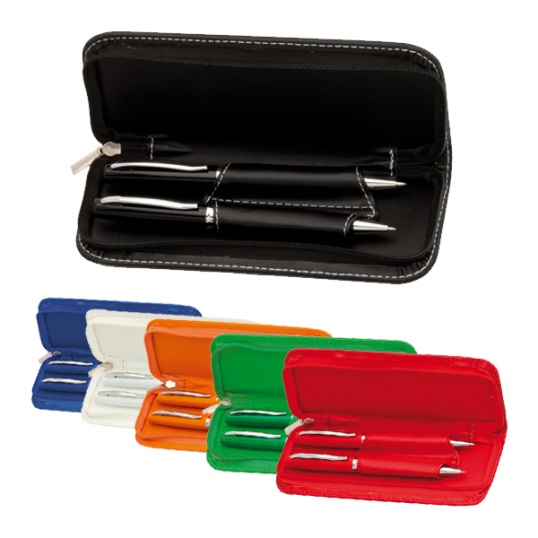 Set de Escritura “Finit”. Incluye Bolígrafo Metálico + Portaminas Metálico. Minas 0.7mm incluidas. Presentación en fino estuche simil cuero..